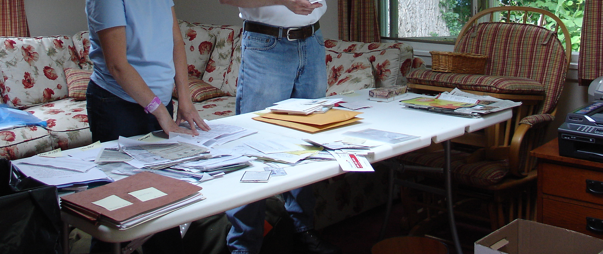 Matt first set up a table for sorting at each of the items that were on this client’s desk.