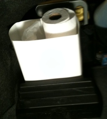 You never value how useful it is to have a little cleaning kit in your car, until you have one. I find myself using it ALL the time. I keep a cleaning spray, a roll of paper towels, and a sponge, in, what else, a kitty litter container. By the way, I secure this kit in my trunk with a Trunk-Eez, trunk container. Seriously, you’ll thank me for this one.