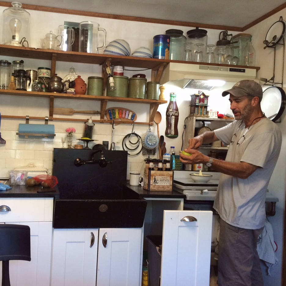 I have always maintained that the key to staying organized is having a plan for movement, in a series of manageable reliable stages. Circulation prevents accumulation. What I noticed about Diego in his home is that he never stops moving. In the picture up top, he is having a very relaxing conversation, but he is cutting pears. He doesn’t stop preparing food. Even more significant, after the rest of us ate too much of Pepe’s Pizza in Fairfield and passed out in the